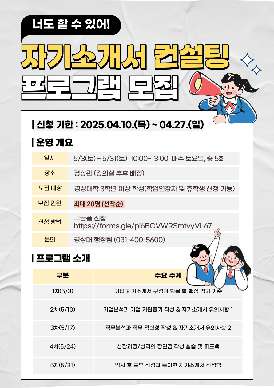 2025-1학기 자기소개서 컨설팅 프로그램과 관련하여 안내드립니다.