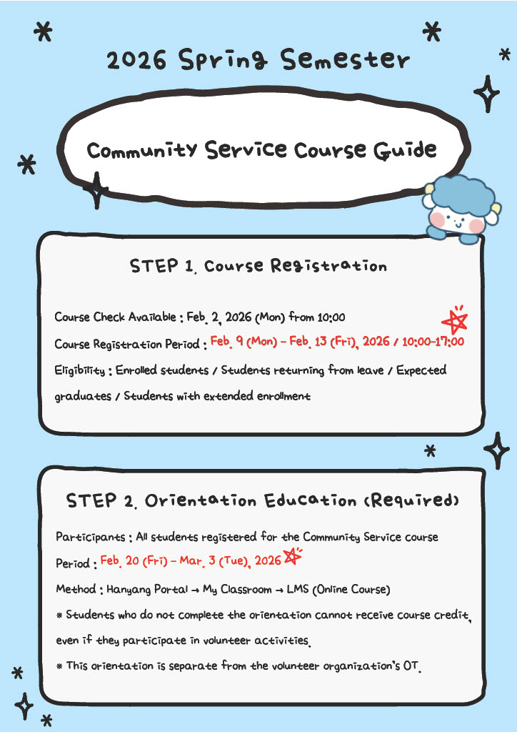 1. 교과목명 : 사회봉사(1학점, Pass/Fail)