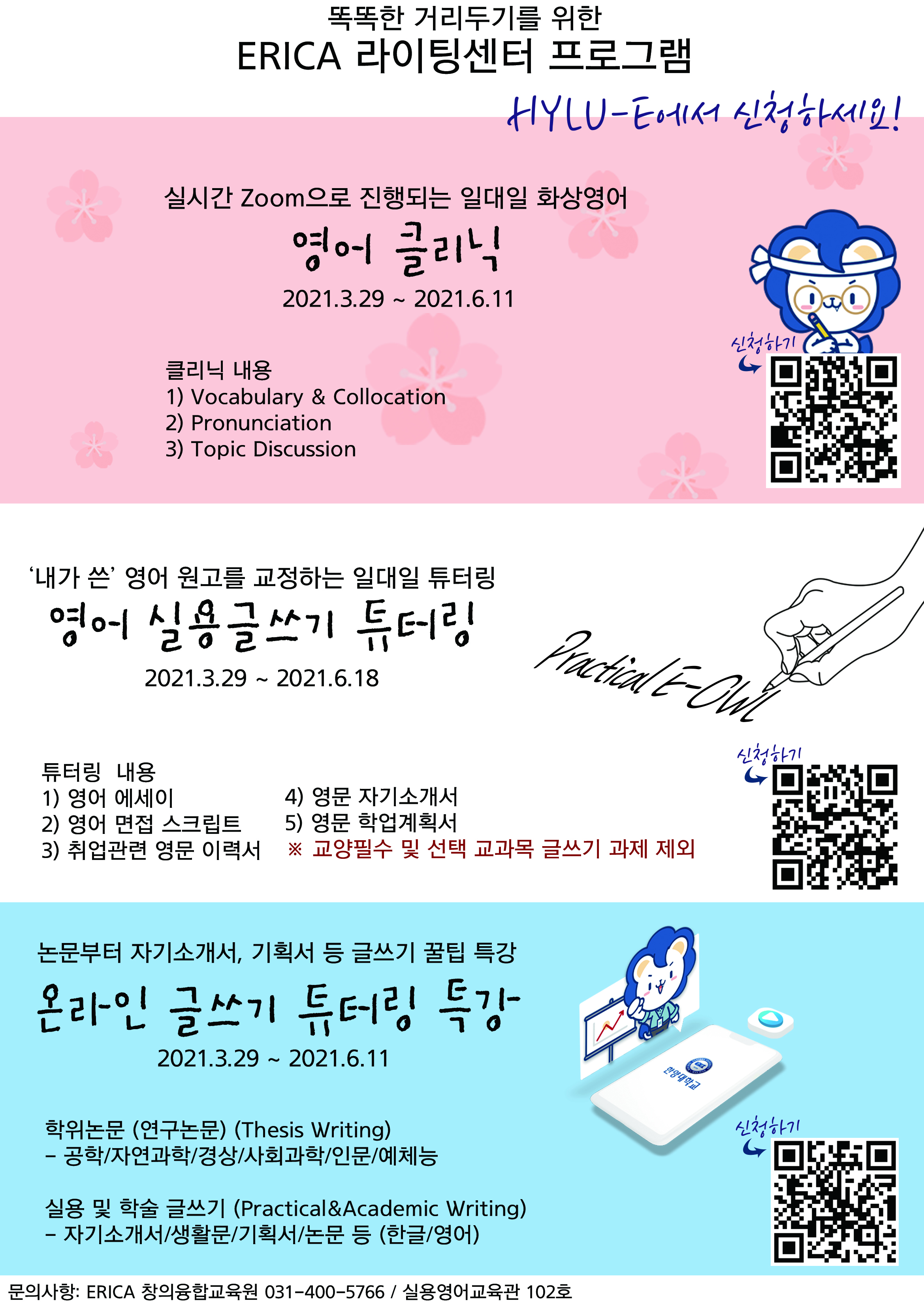 ‘ERICA 라이팅센터 비교과 프로그램’을 운영하고 있으니 많은 참여바랍니다.