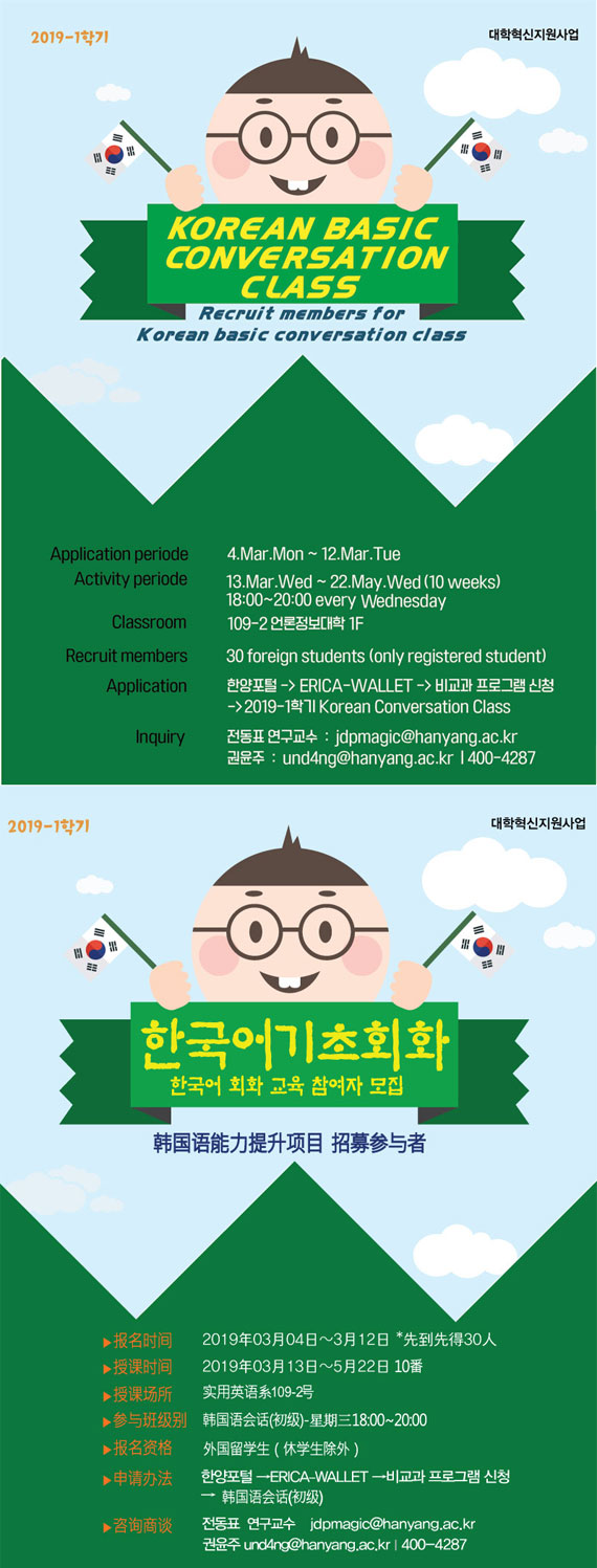 * Should you have any inquiries about this Korean language program, please contact 031-400-4287,(und4ng@hanyang.ac.kr).