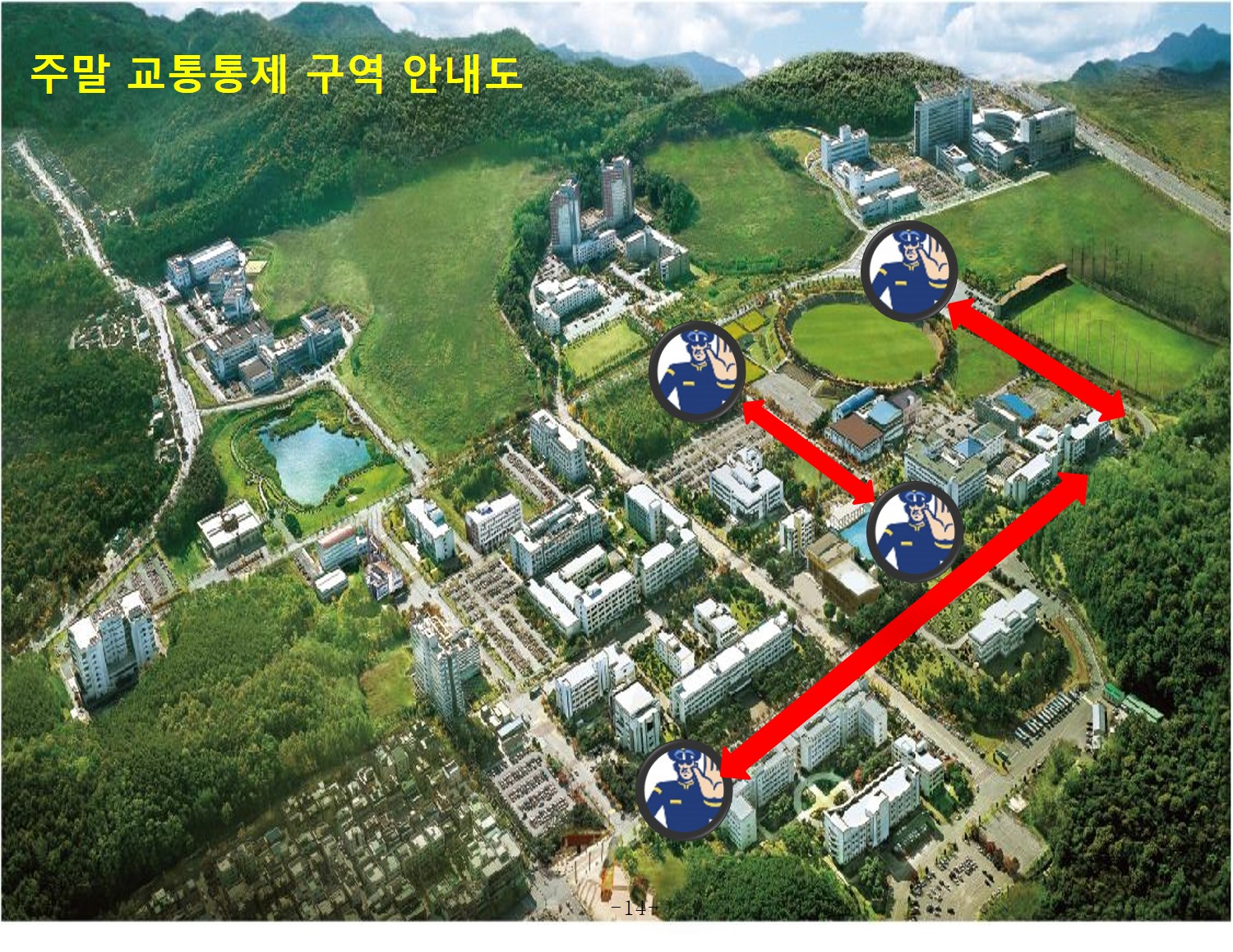 2) 디자인대학 <-> 골프연습장 방향 차로 통제 (전체차량 진입불가)