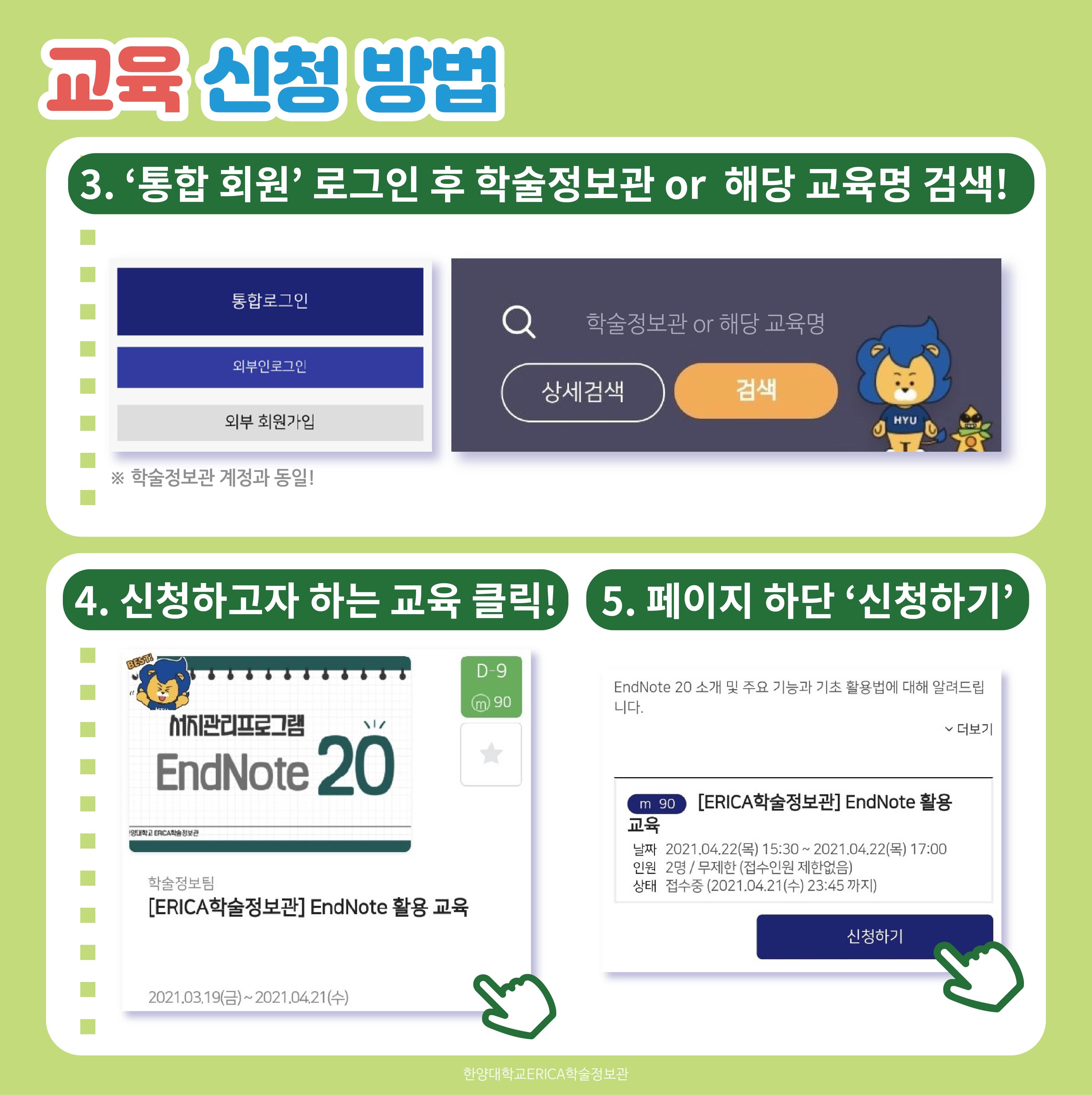 - 교육 신청 바로가기 : https://hylu-e.hanyang.ac.kr/