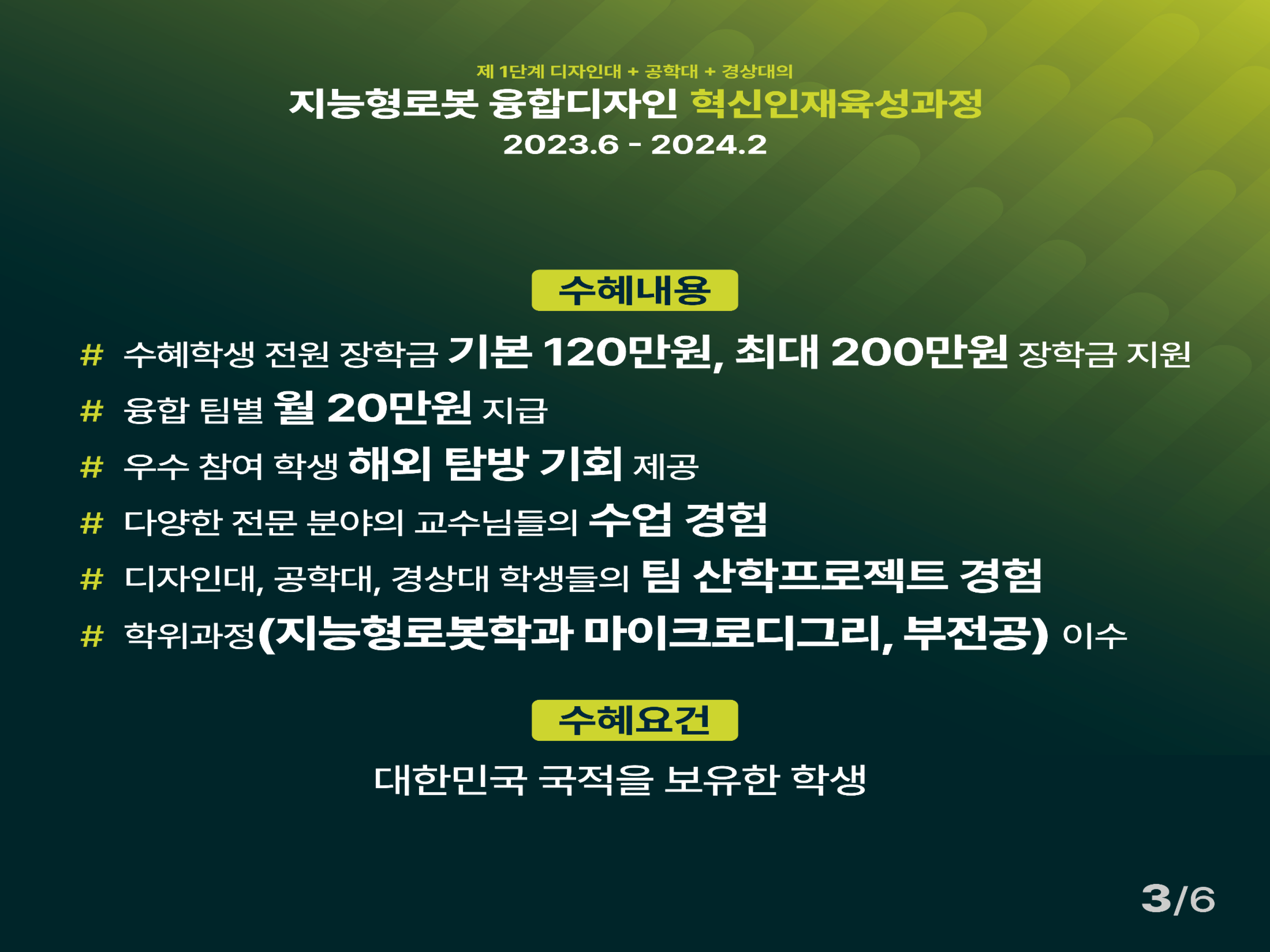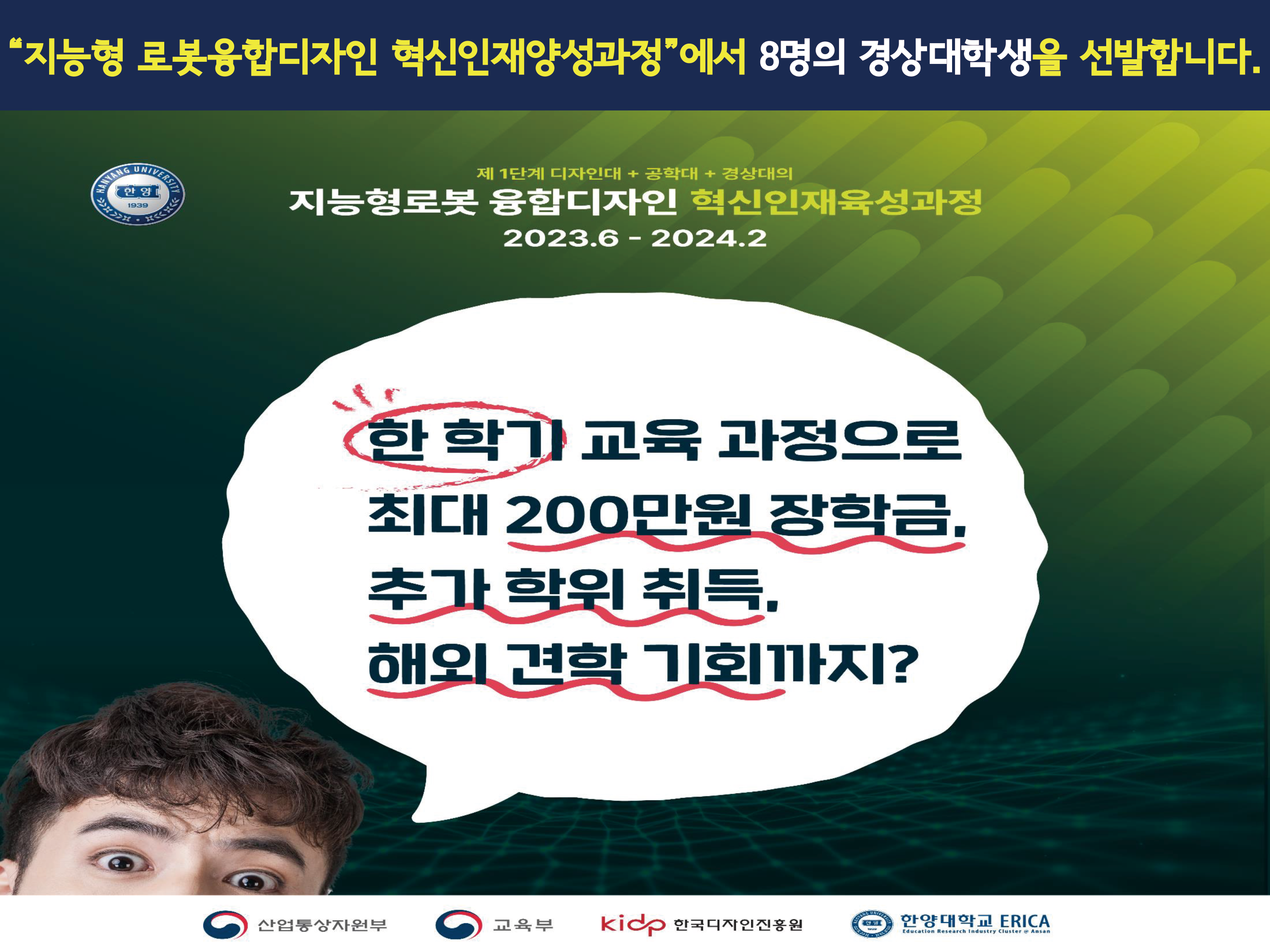 지능형 로봇융합디자인 혁신인재양성과정에서 8명의 경상대학생을 선발합니다.
