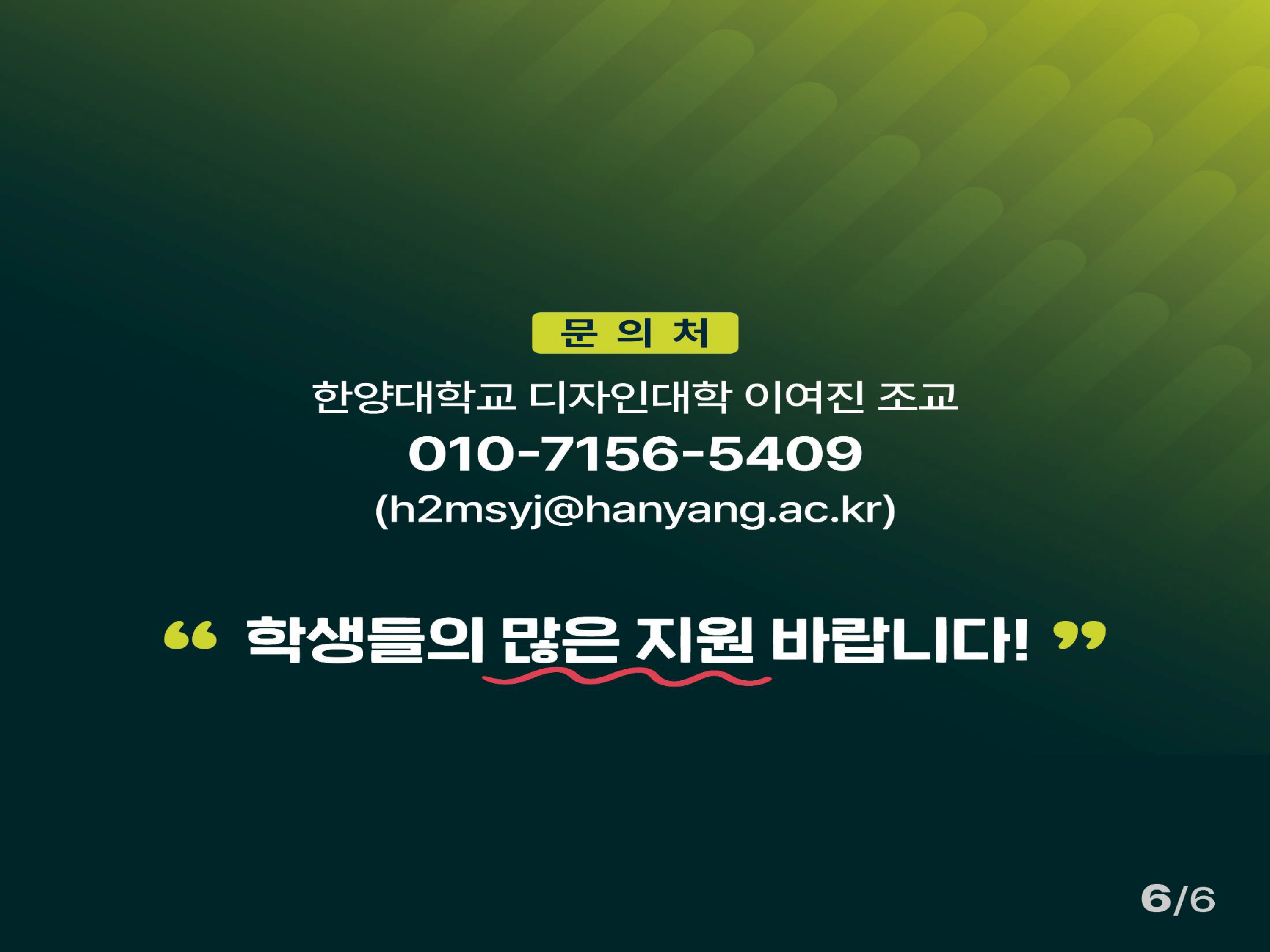 ○ 문의 : 한양대학교 디자인대학 이여진 조교(h2msyj@hanyang.ac.kr / 010-7156-5409)