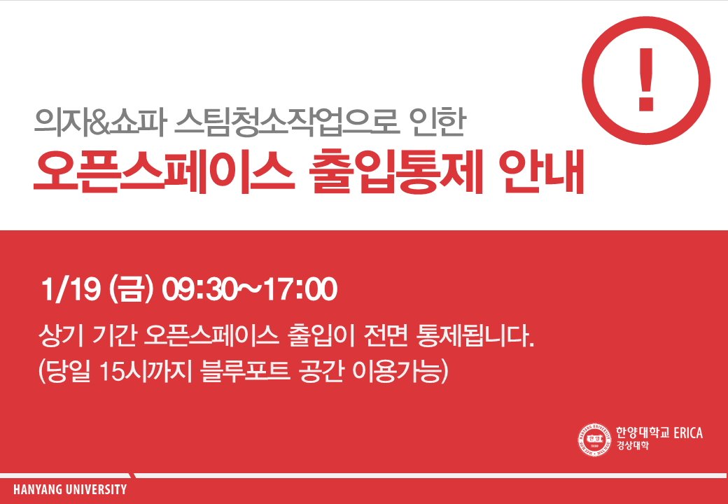 해당 기간 중 오픈스페이스 이용이 불가하오니 양해 부탁드립니다.