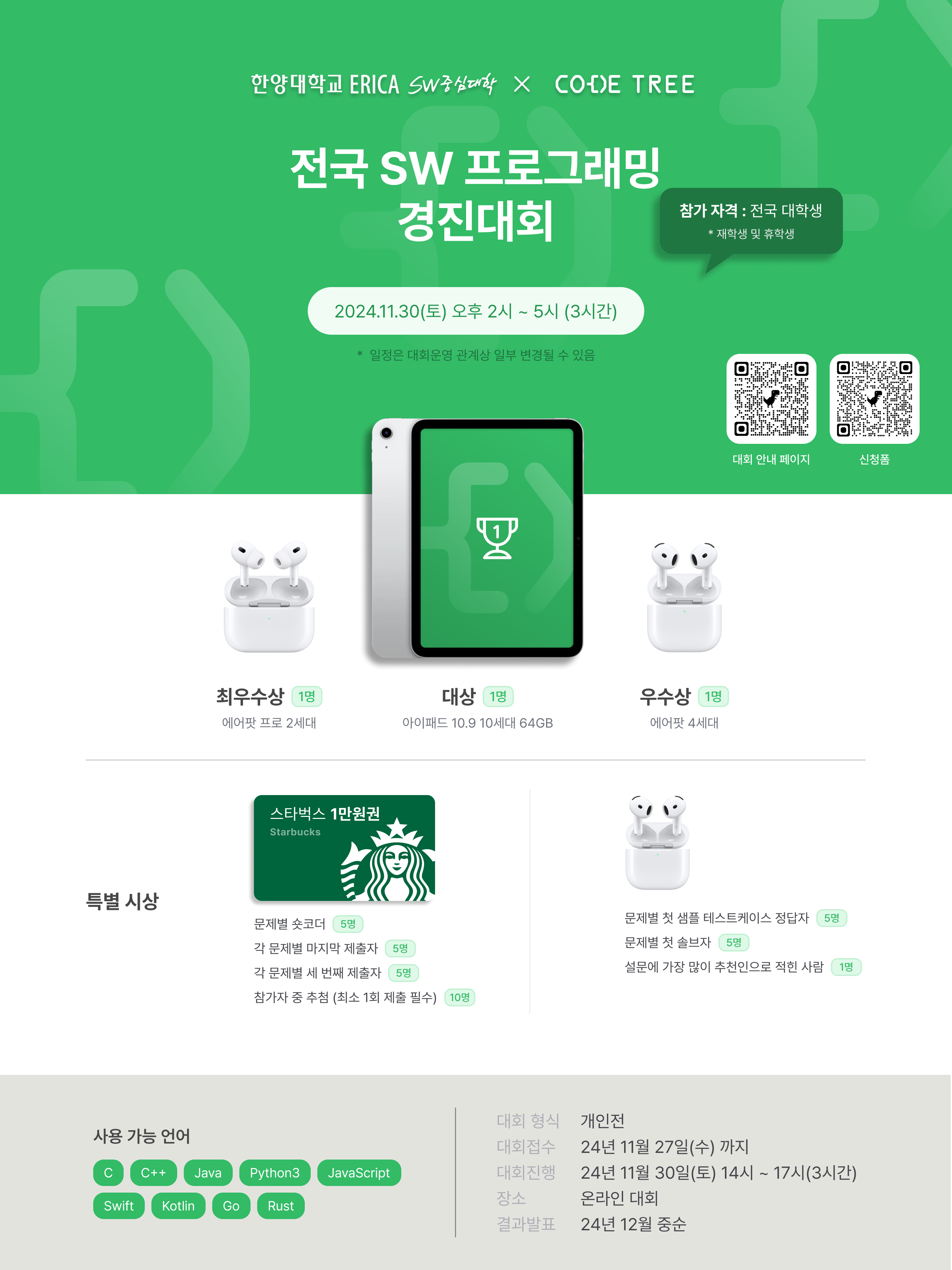 한양대학교 ERICA와 함께하는 2024 전국 SW 프로그래밍 경진대회