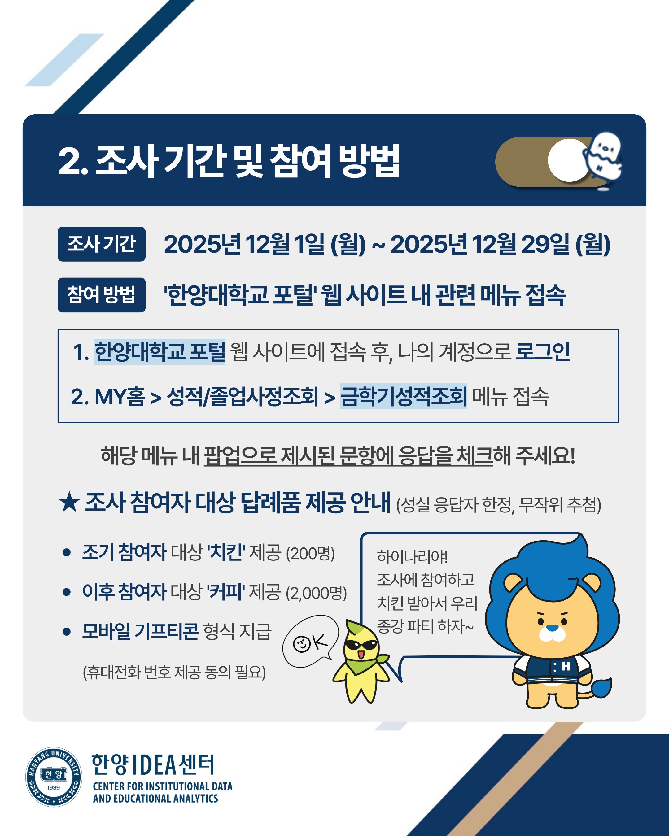 1) 명칭: 2025 한양인 성장경험 및 성취 학생 조사(Hanang IDEA Student Survey)