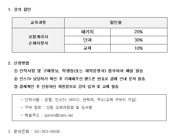 [인스TV보험학원] 2026 보험계리사&손해사정사 교육과정 강의 할인 안내 Hit 753