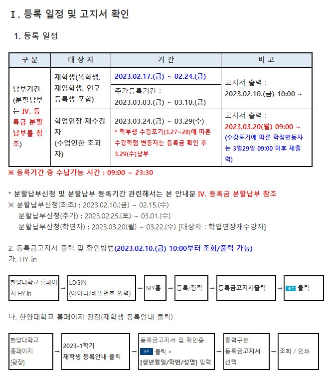[등록금 납부] 2023-1학기 등록금 납부 일정 및 분할납부 안내