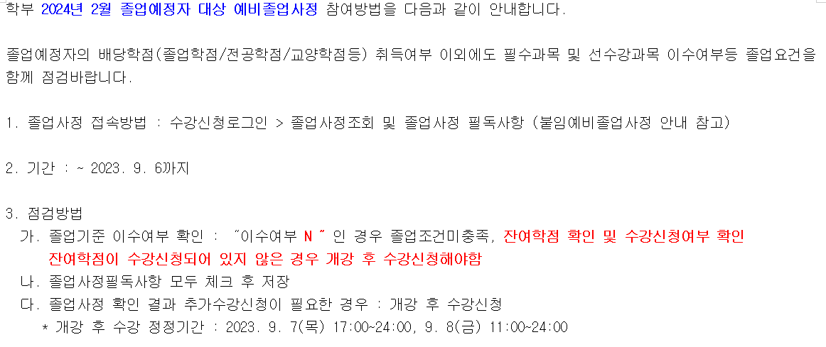 [2024. 2월 졸업예정자] 예비졸업사정 참여 안내