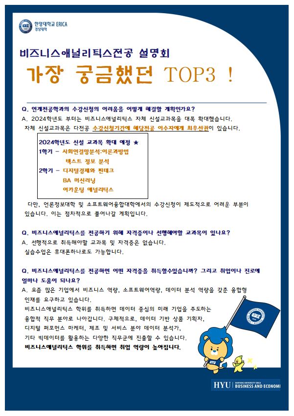 [융합전공] 2023-2학기 비즈니스애널리틱스 전공 설명회_QnA 공유