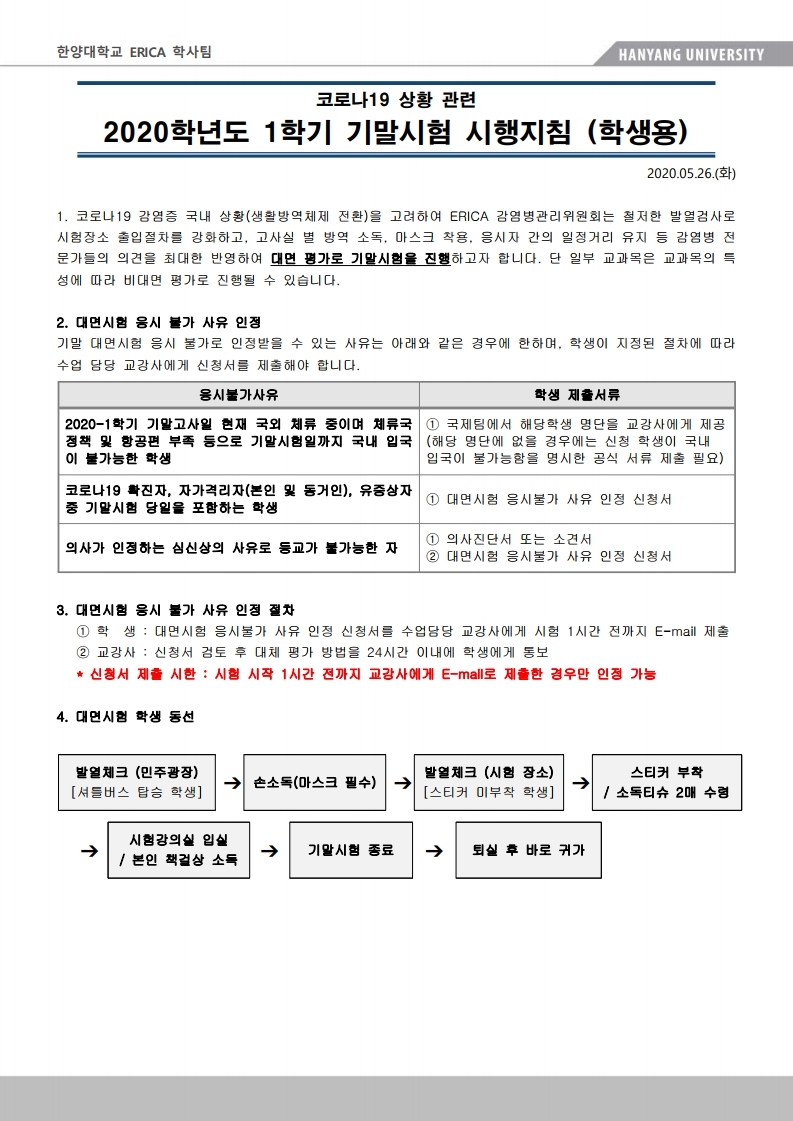 [수업] ERICA 학부 기말시험 시행지침