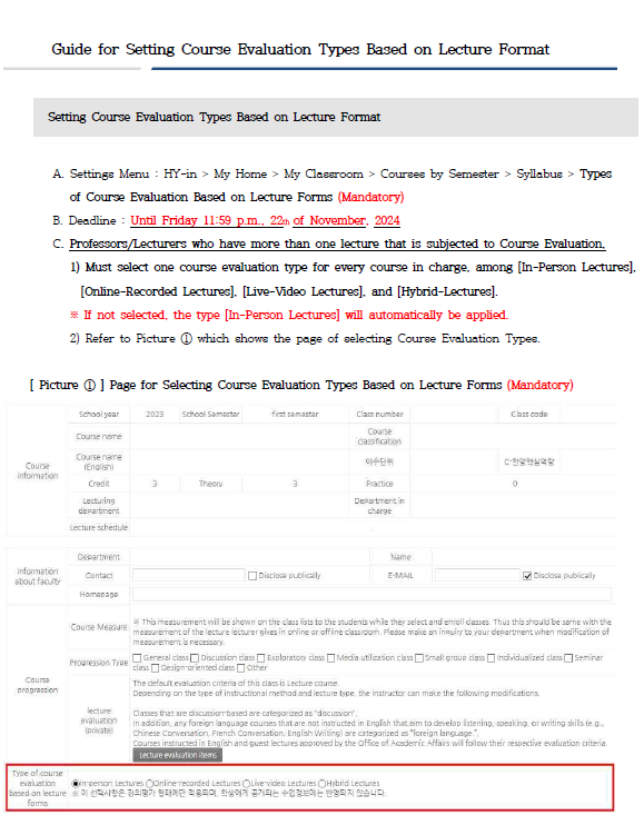 붙임3. Guide for Setting Couse Evaluation Types Based on Lecture Format(2024-2).pdf