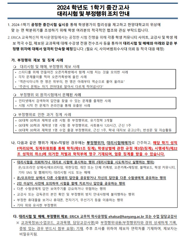 붙임4. 2024학년도 1학기 중간고사 대리시험 및 부정행위 조치 안내.pdf
