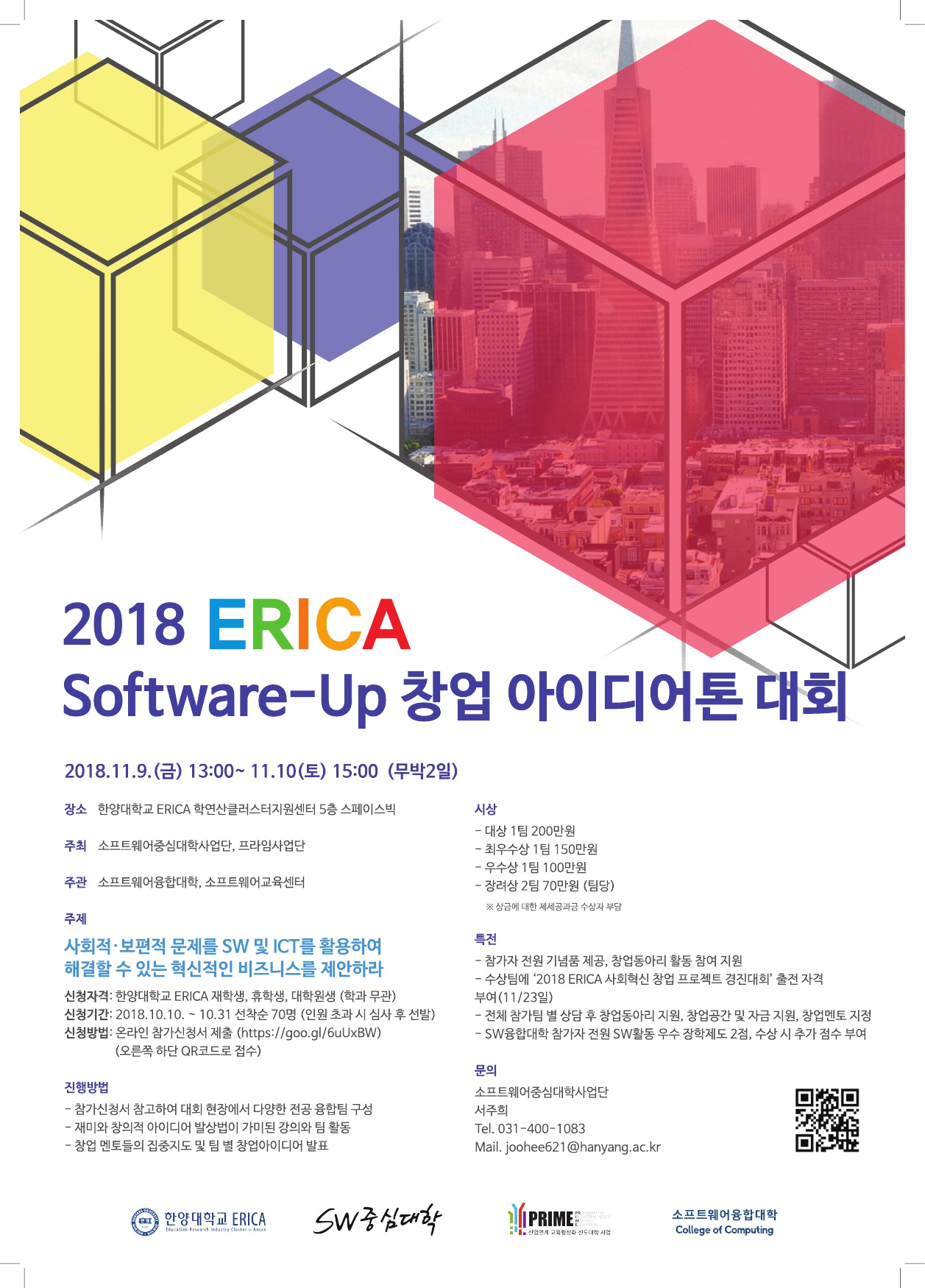 [공모전]2018 ERICA software-up 창업아이디어톤대회 안내
