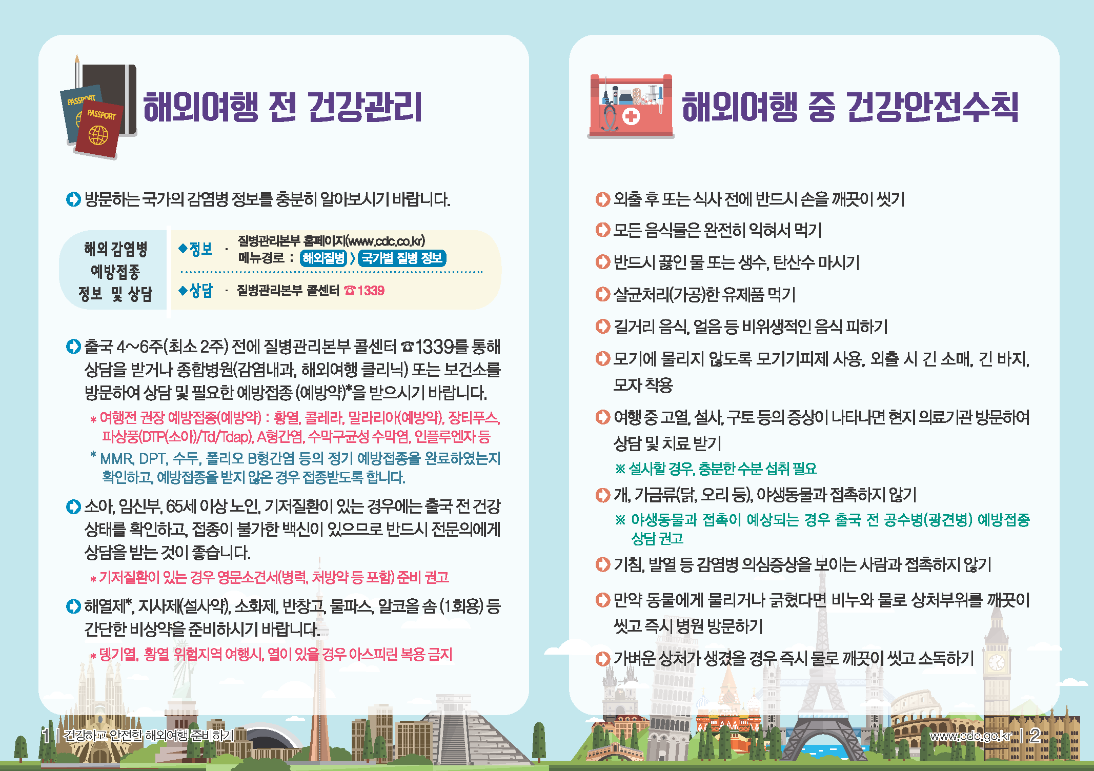 1. 최근 대구에 이어 안산에도 홍역환자가 발생함에 따라 전국 확산 방지 조치에 따라 감염병 예방 및 관리에 각별한 유의가 필요합니다. 최근 유럽, 중국, 태국, 필리핀 등에서 홍역이 유행함에 따라 이 지역을 여행하는 경우 예방접종완료 여부를 확인 후 미완료시 예방접종을 하고 개인위생수칙을 준수하기 바랍니다.