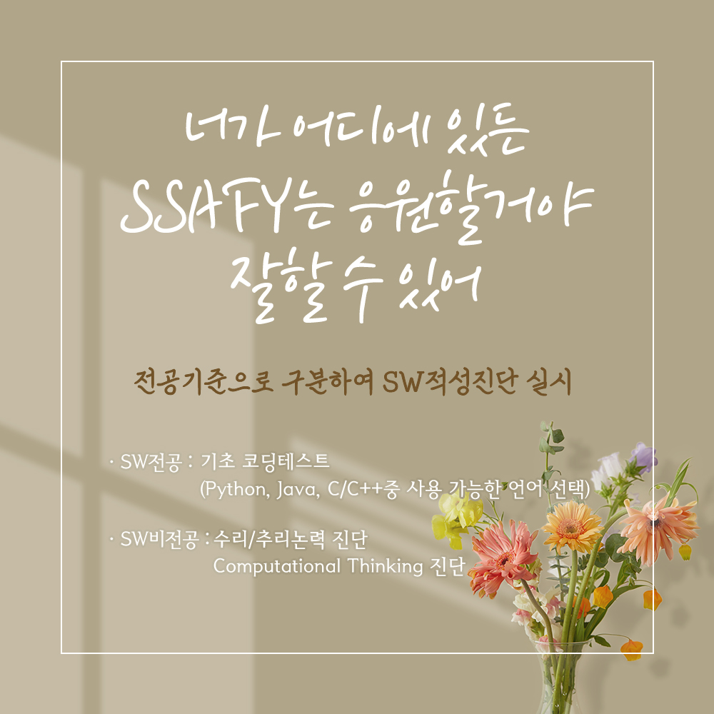 ※ SW 적성진단은 지원서상 선택한 전공 기준으로 구분하여 실시