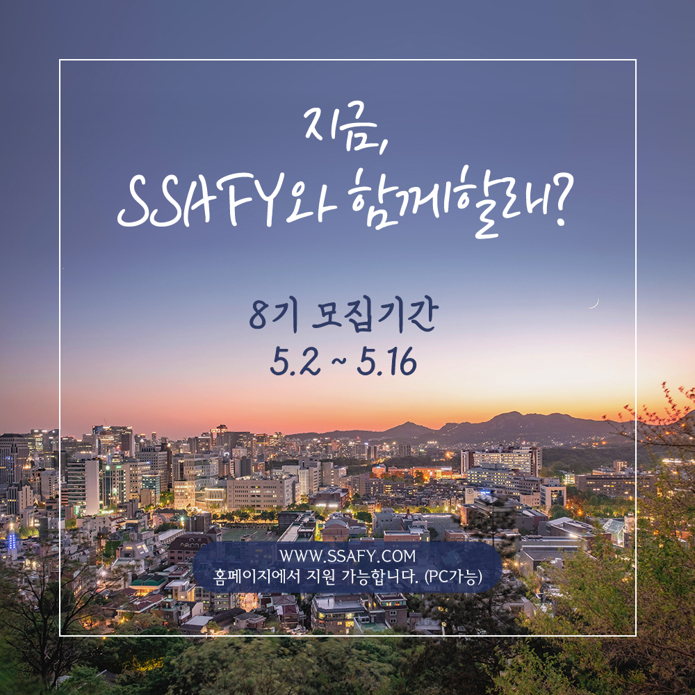 삼성 청년 SW 아카데미(Samsung Software Academy For Youth, SSAFY) 8기를 모집합니다.