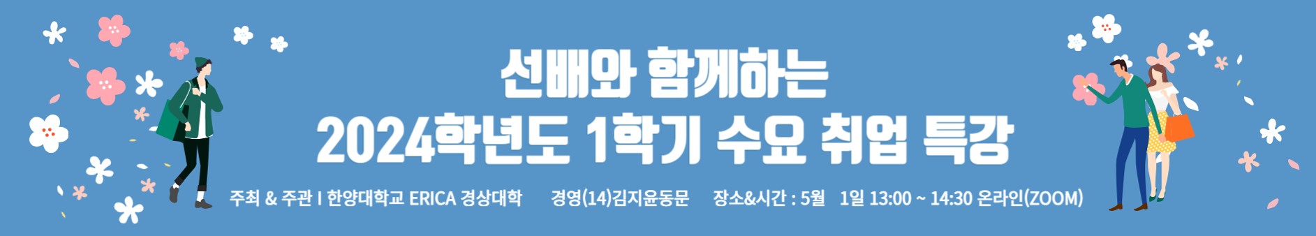 2024학년도 1학기 경상대학 수요 취업 특강이 상기 일정과 같이 진행될 예정입니다!