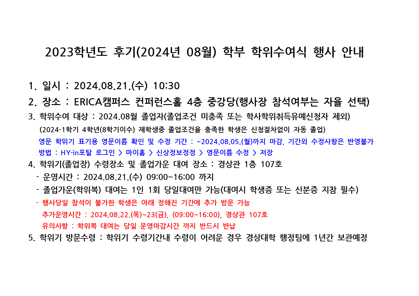 [졸업]2023학년도 후기(2024년 8월) 학위수여식 행사 안내