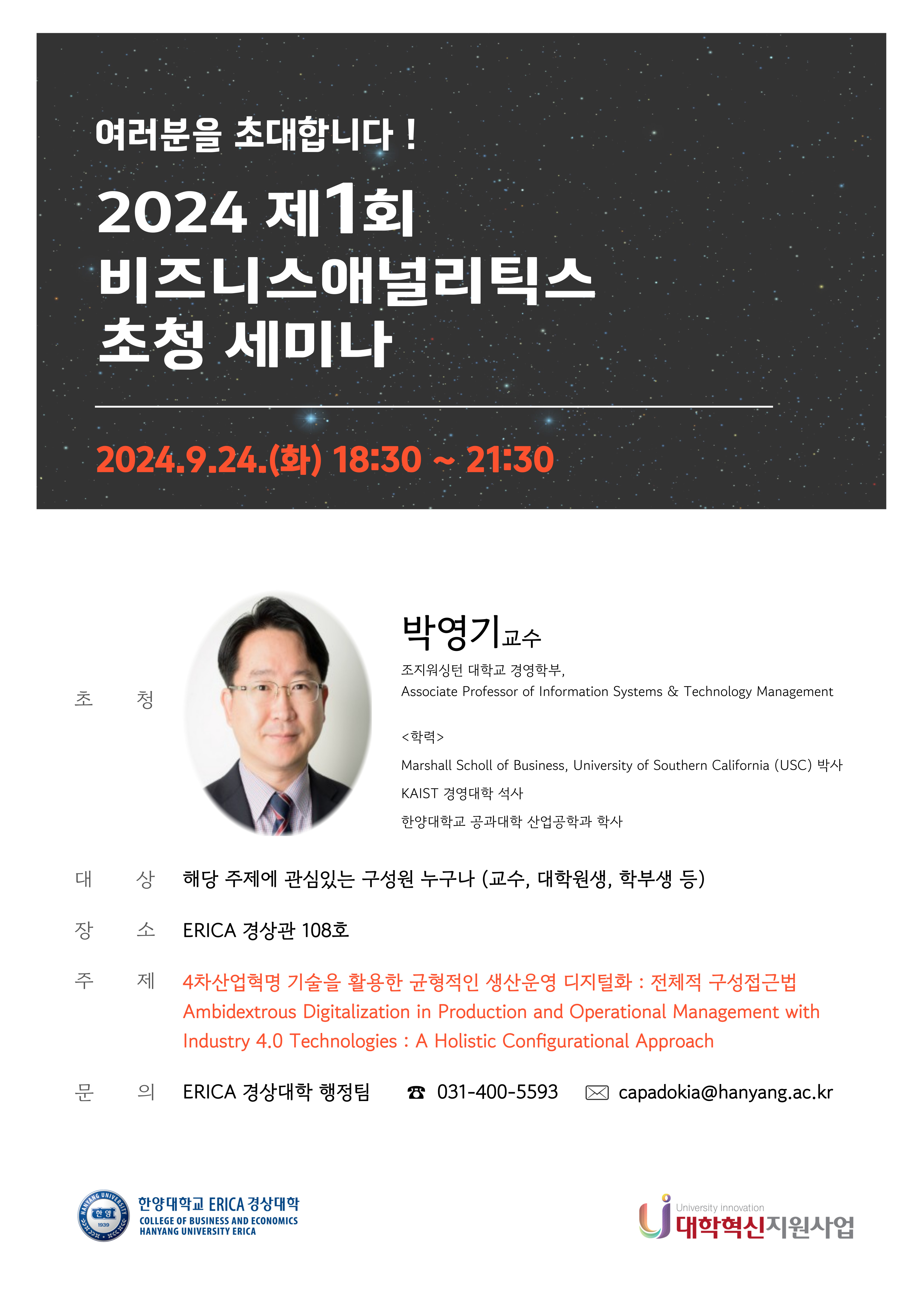 2024년 제1회 『비즈니스애널리틱스 초청 세미나』 (09.24.(화) 18:30~21:30))