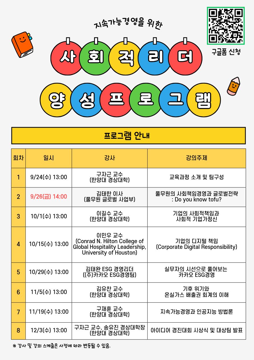 경상대학에서는 <지속가능경영을 위한 사회적 리더 양성 프로그램>을 진행하고자 합니다.