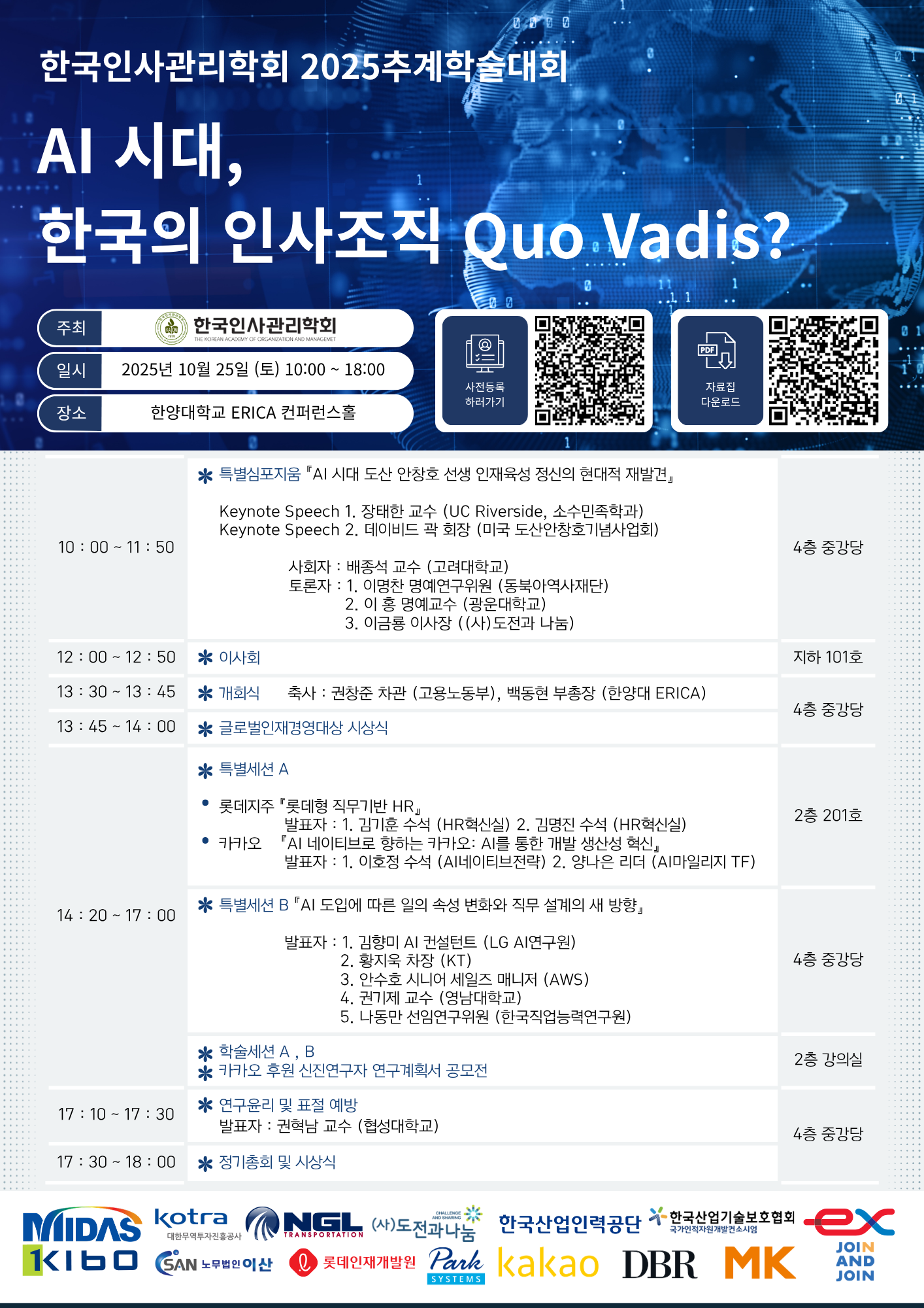 한국인사관리학회에서 추계학술대회를 개최합니다.