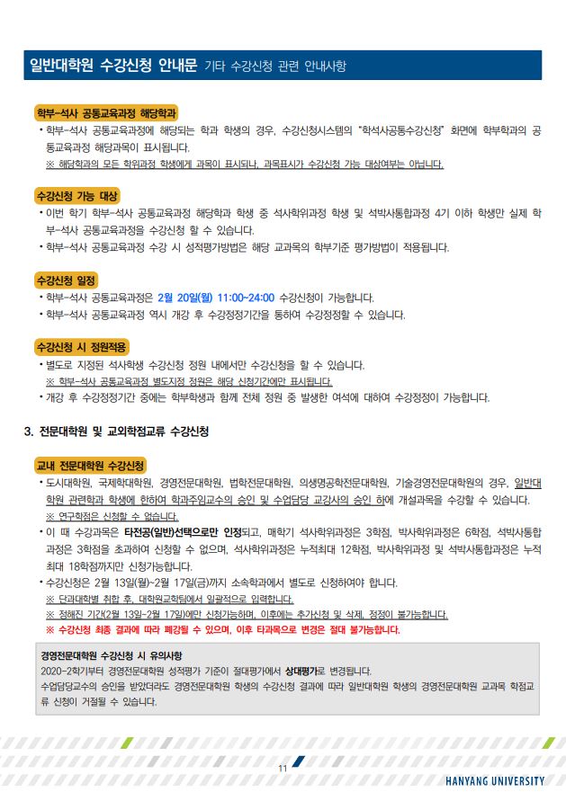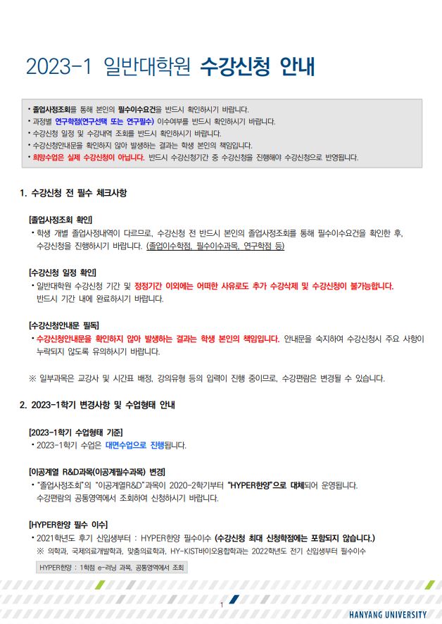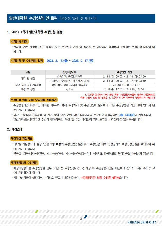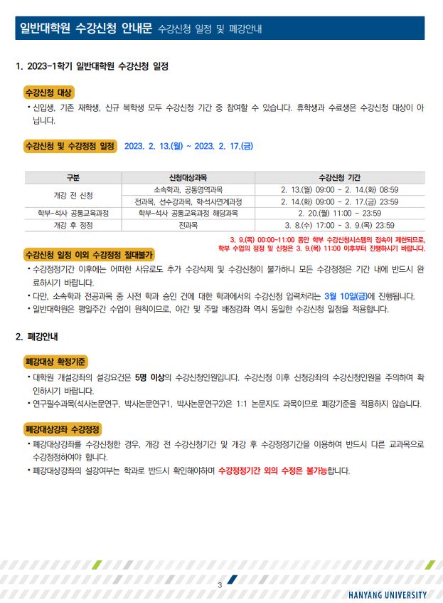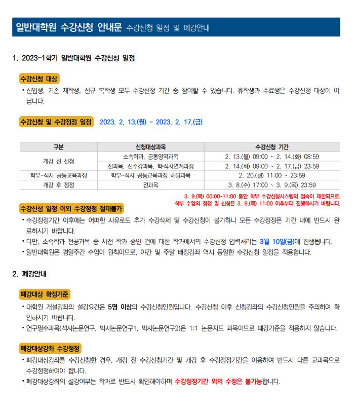 [학사공지] 2023-1학기 일반대학원 수강신청 안내(수정)