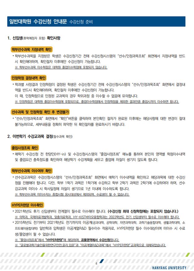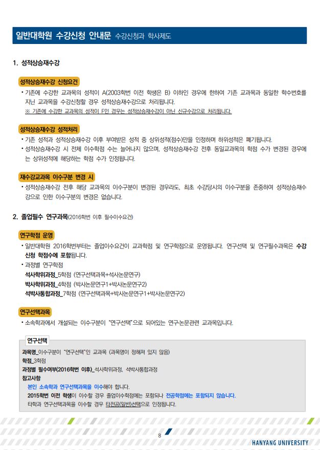 졸업이수학점, 필수이수과목, 연구학점 등 확인필수!
