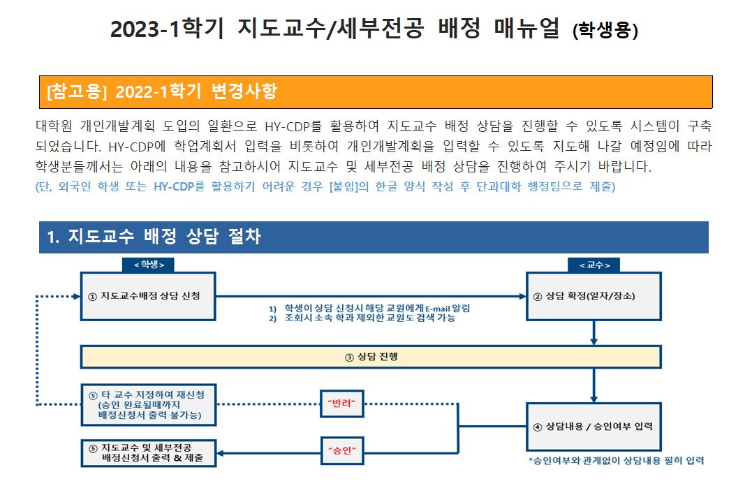 붙임2-3. 지도교수 및 세부전공 배정 매뉴얼(학생용)