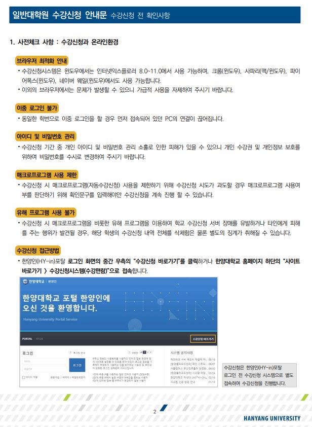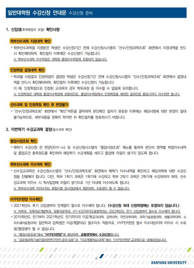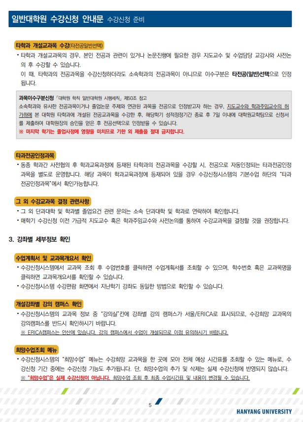 수강신청 안내문을 확인하지 않아 발생하는결과는 모두 학생의 책임입니다.