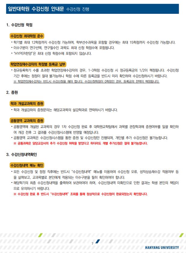 반드시 수강신청 안내문을 확인하시기 바랍니다.