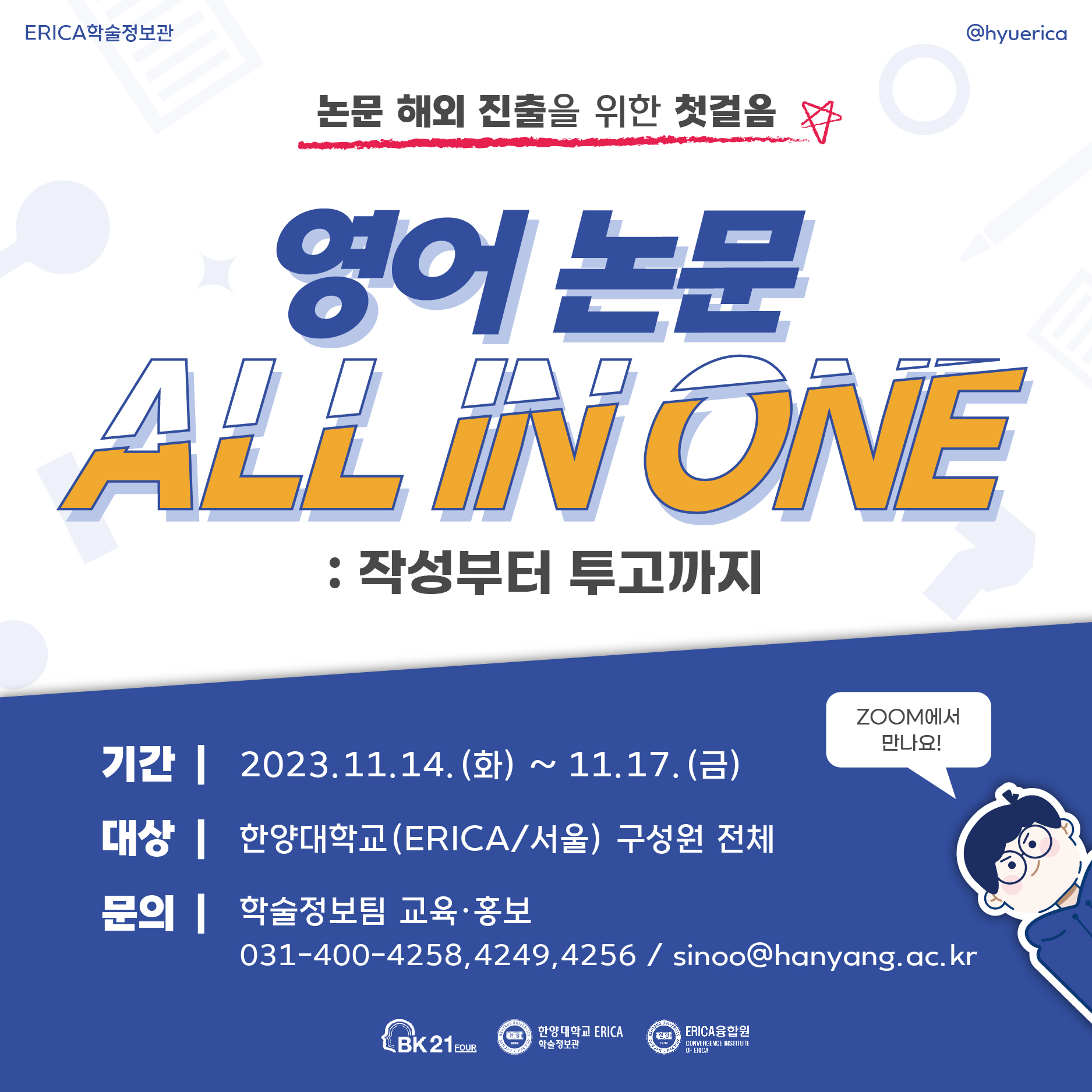 (홍보) [ERICA학술정보관] 4단계 BK21 대학원혁신사업 「영어 논문 ALL IN ONE」