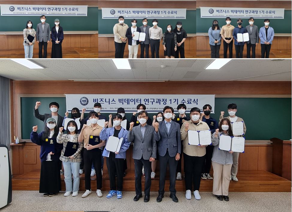 경상대학 빅데이터 분석과정 1기 수료식이 진행되었습니다. 학생분들의 관심과 지원에 감사드립니다.