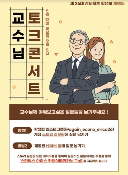 제26대 경제학부 학생회에서는 학생 대상으로"교수님과의 토크콘서트" 행사를 진행하였습니다.