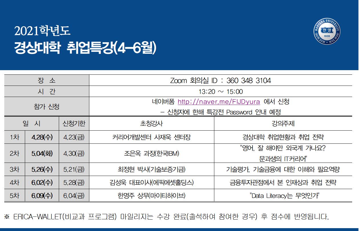 2021학년도 경상대학 취업특강(4-6월) 1~5차 특강 동영상(업로드)