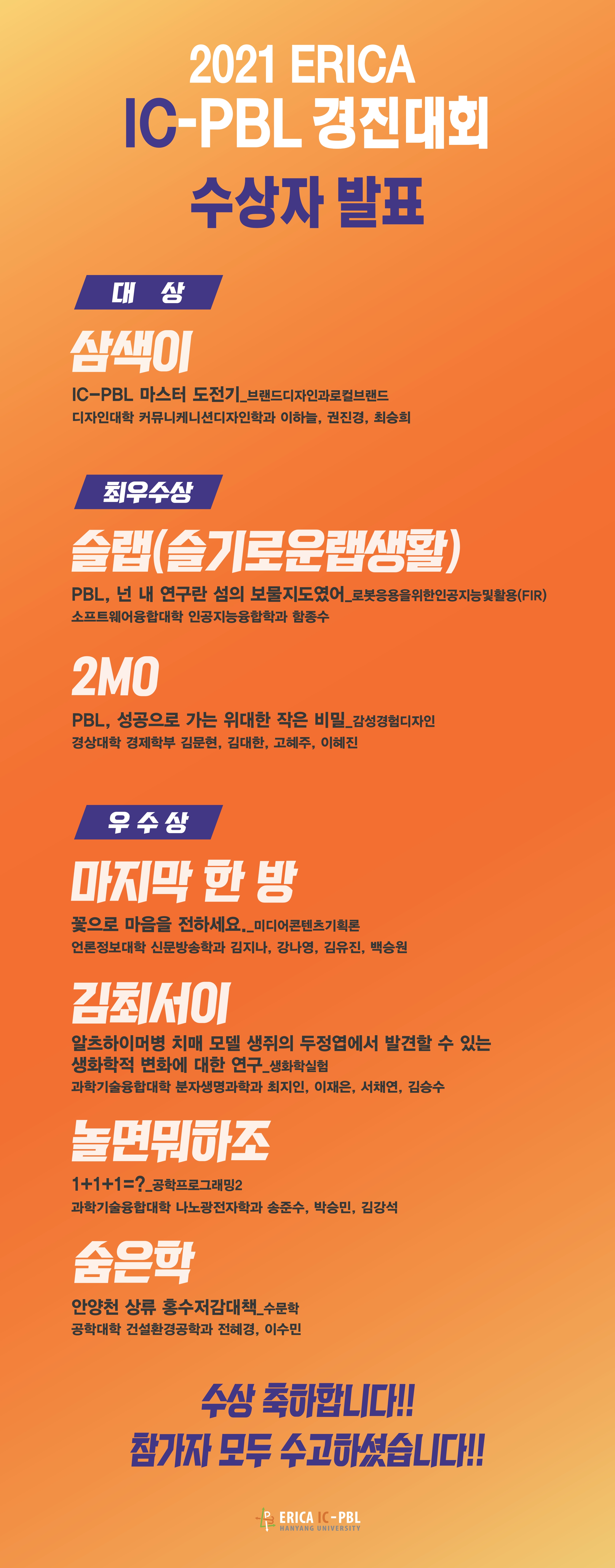 2021학년도 ERICA IC-PBL 경진대회 수상 결과 발표