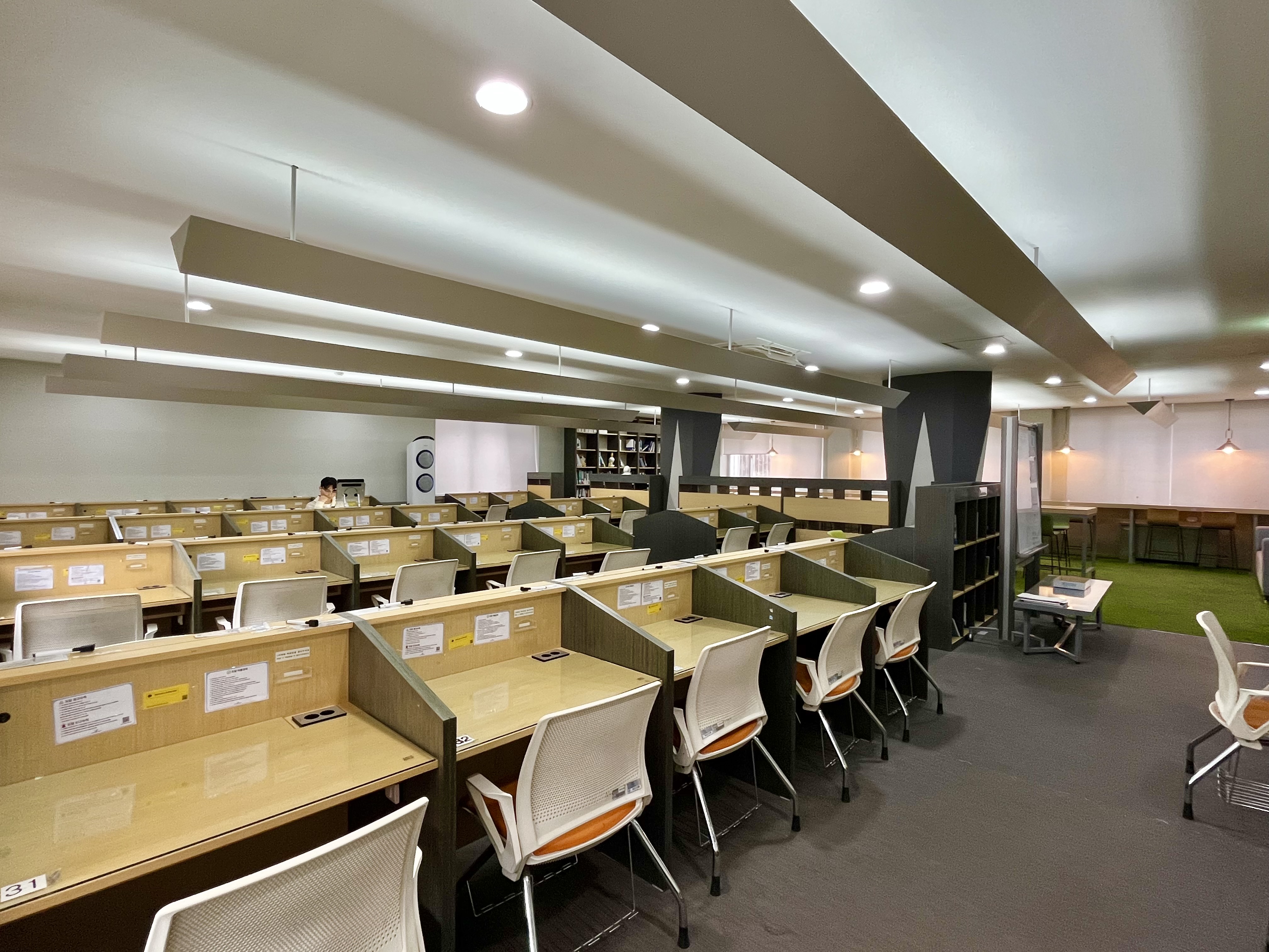 도담은 조용히 공부하고 싶은 경상대학 학생들을 위한 독서실이다. 노트북과 태블릿 사용이 잦은 학생들을 위해 창가 쪽 바 테이블 아래 멀티탭을 설치하여 활용도를 높이고자 하였다. 또한, 바 테이블 위에 천장 등을 설치하여 공부하는 공간이 따뜻하고 환한 느낌이 들도록 만들었다. 기존에 놓여있던 소파 테이블 자리에는 다인용 바 테이블을 설치함으로써 더 많은 학생들이 공부할 수 있도록 하였다. 한편, 1인용 스터디 책상의 경우 경상대학 학생회를 통하여 온라인 예약제로 운영되고 있으니 다음의 링크에 접속해 회원가입 후 예약하여 사용하길 바란다. (https://ibus-space.hanyang.ac.kr/front/rrMdReserve)