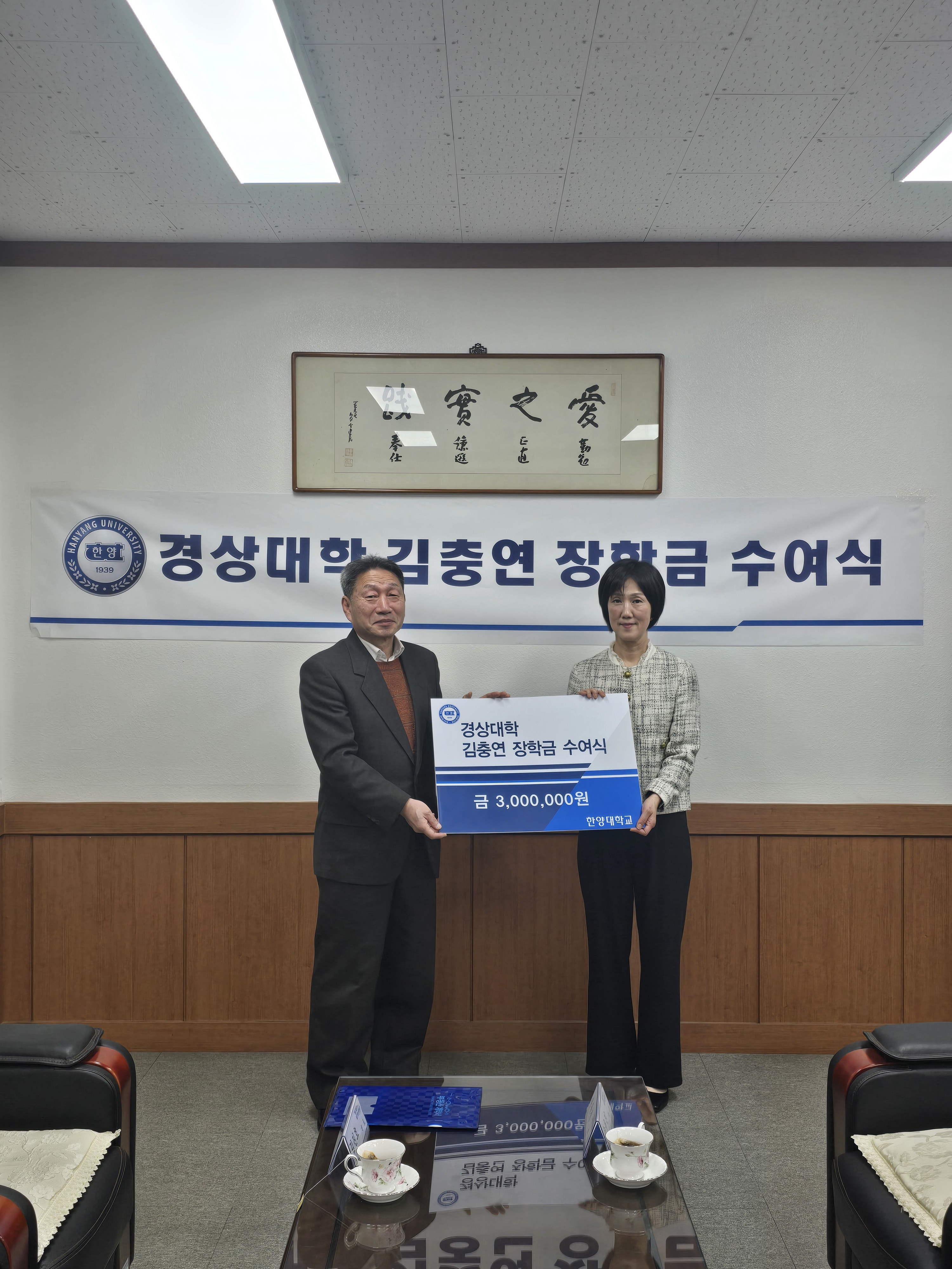 경상대학은 2026년 3월 18일, 김충연 장학금 기탁자이신 김진호 대표님을 모시고 '김충연 장학금 전달식’을 진행하였습니다.