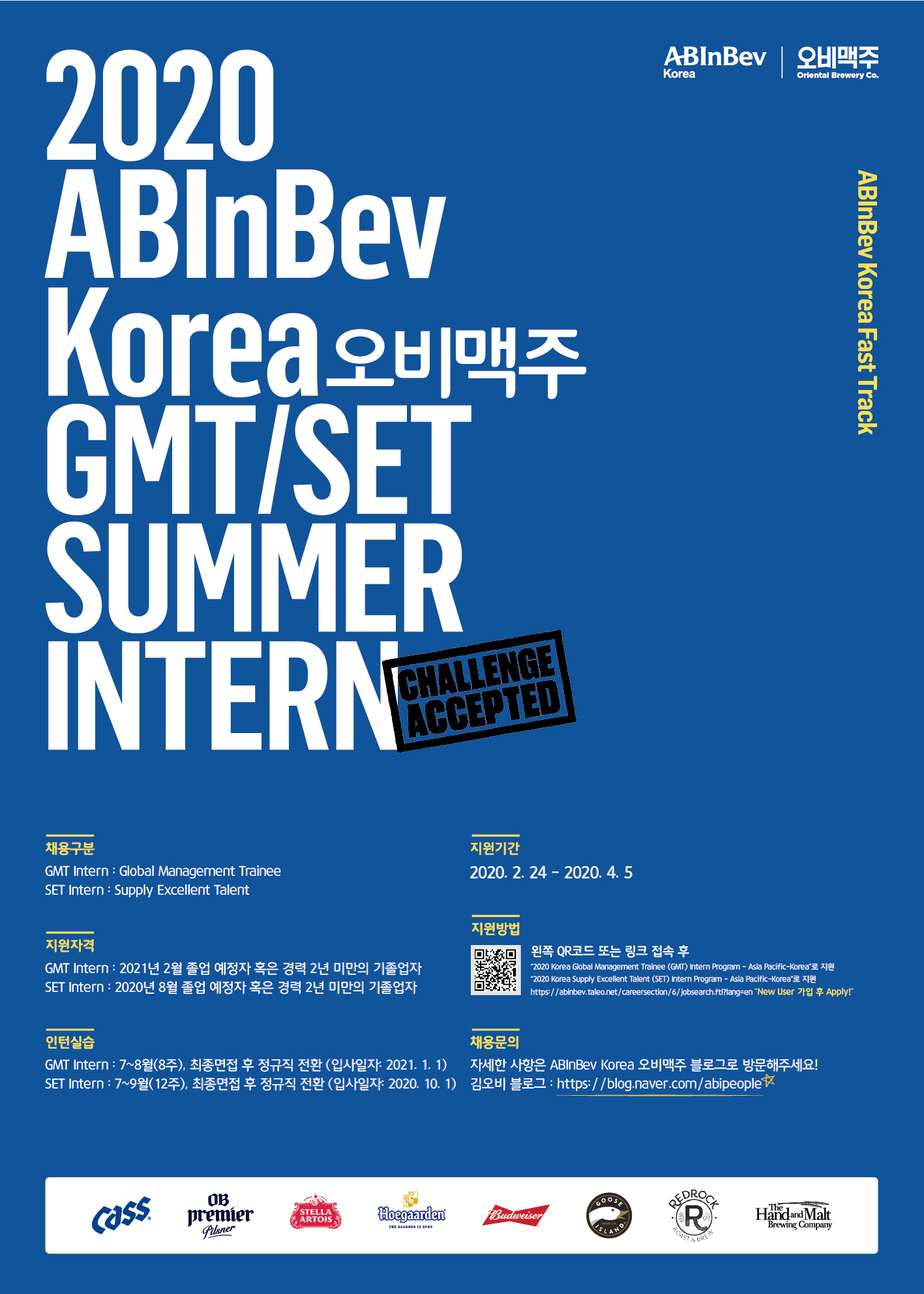 [오비맥주]2020년 GMT/SET Summer Intern 모집 홍보 (~ 4/5일)