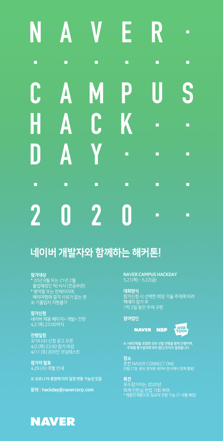 [NAVER]네이버 개발자와 함께하는 해커톤(~4/2(목) 참가마감))