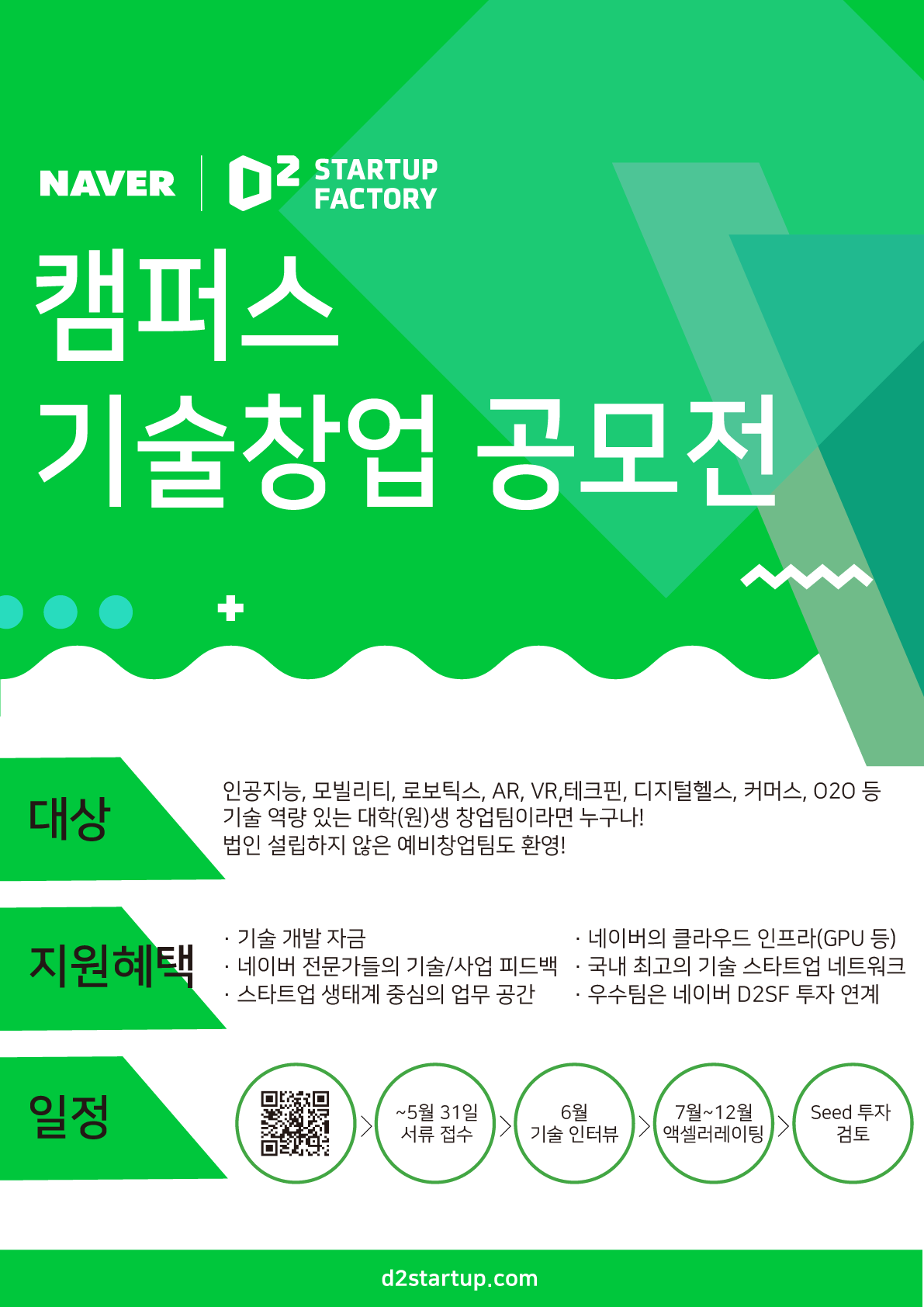 네이버가 캠퍼스 기술창업팀을 지원합니다.