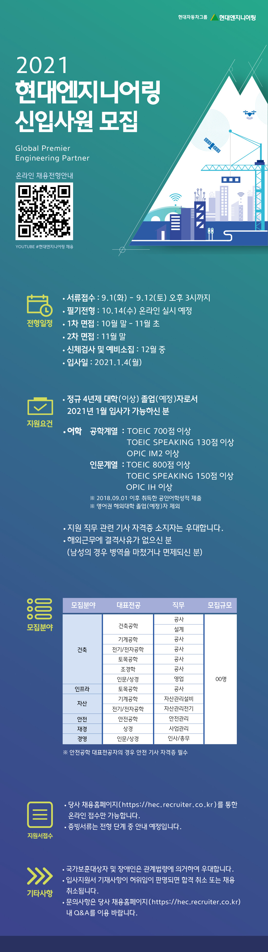 · 어학 (공학계열) : TOEIC 700점 이상 / TOEIC SPEAKING 130점 이상 / OPIC IM2 이상
