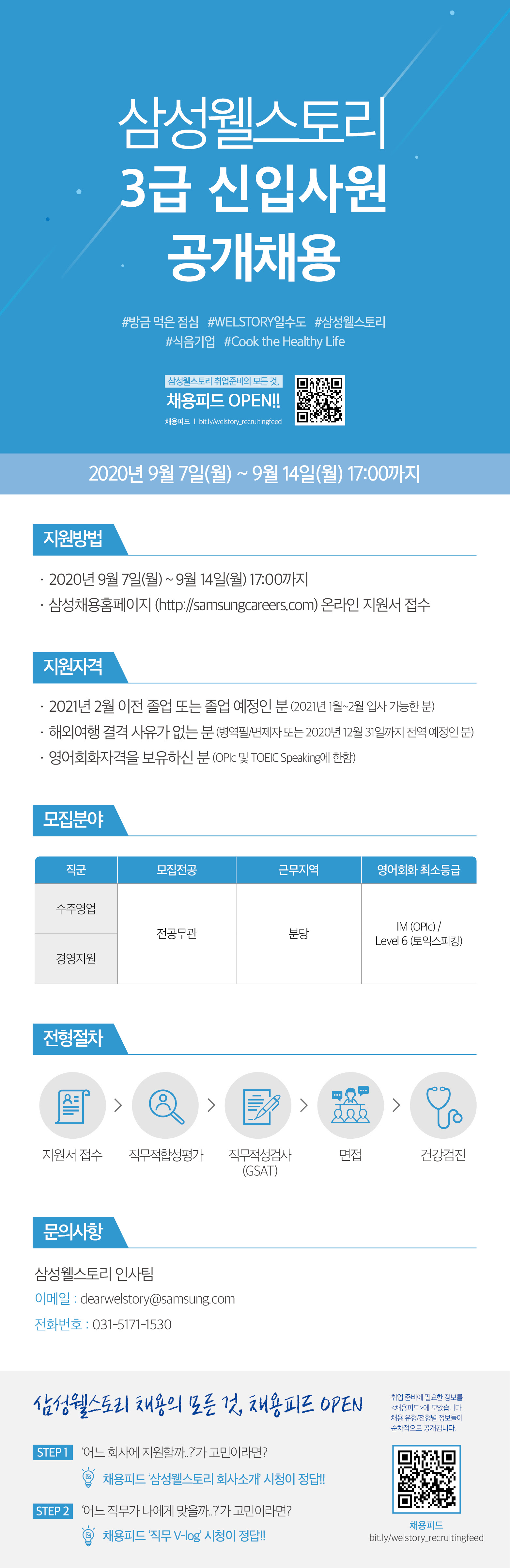 [삼성웰스토리] 2020년 하반기 3급 신입사원 채용(~9.14)