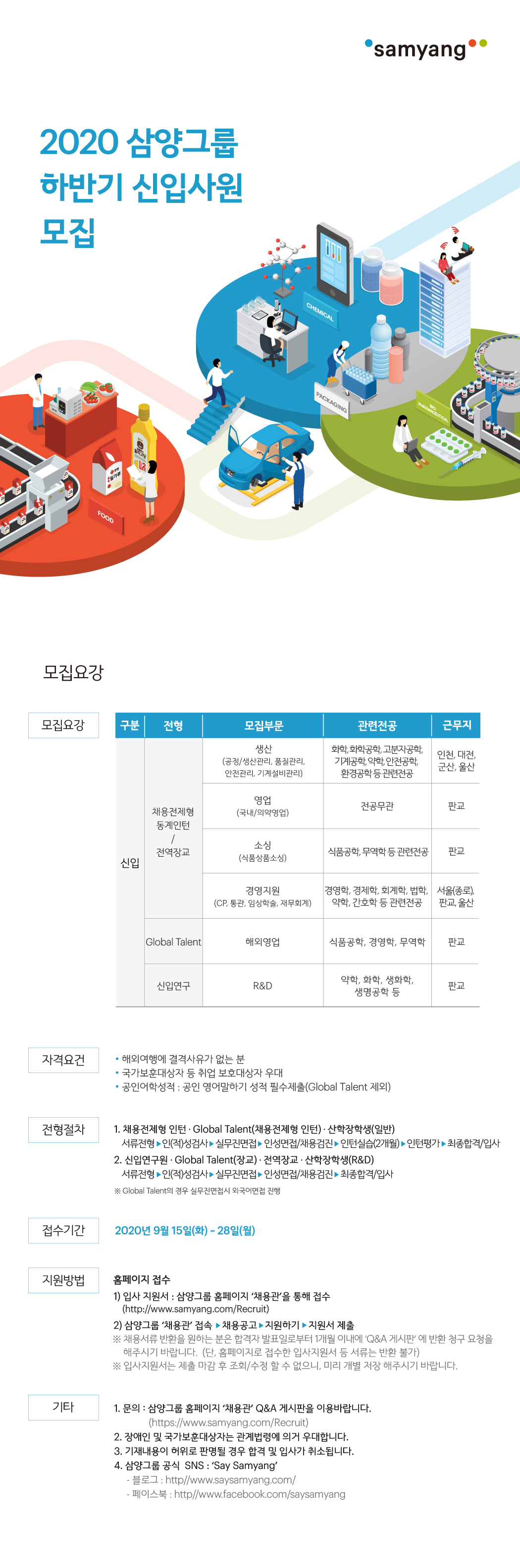 [삼양그룹] 2020 삼양그룹 하반기 신입사원 모집