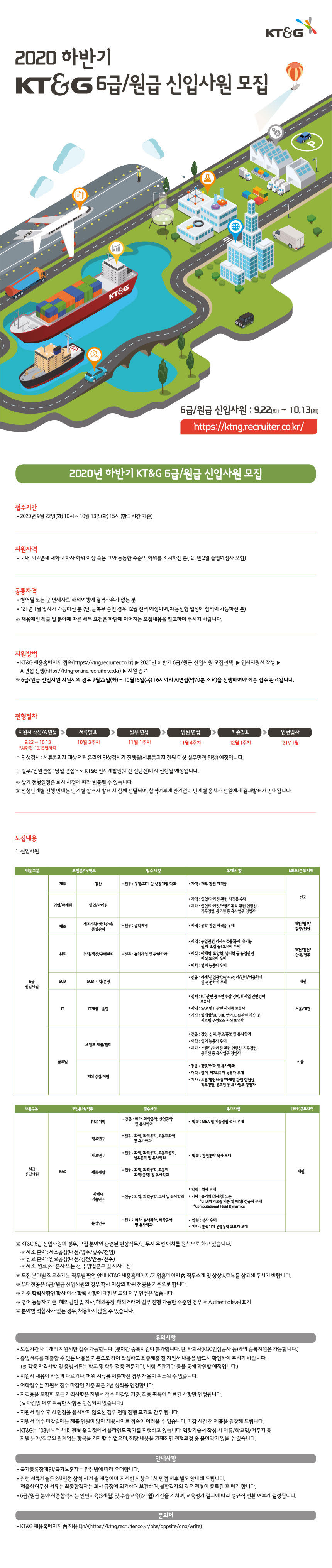 [KT&G] 2020 하반기 6급/원급 신입사원 채용