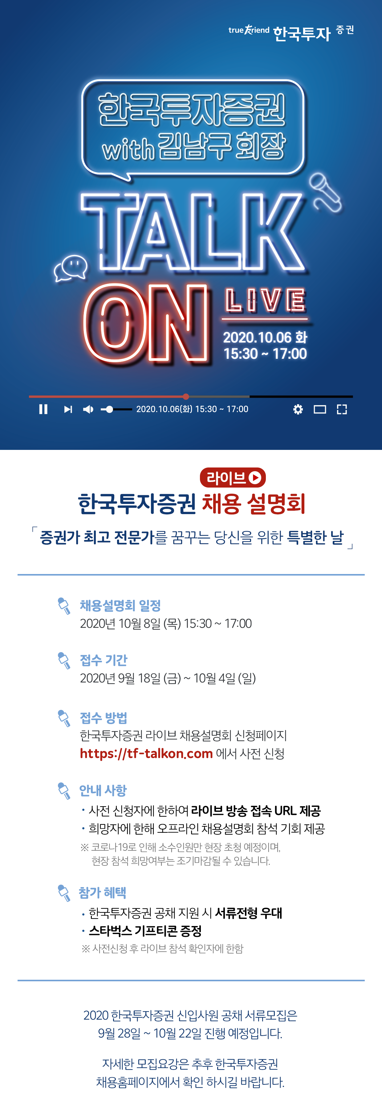 한국투자증권 라이브 채용설명회 사전 신청 안내