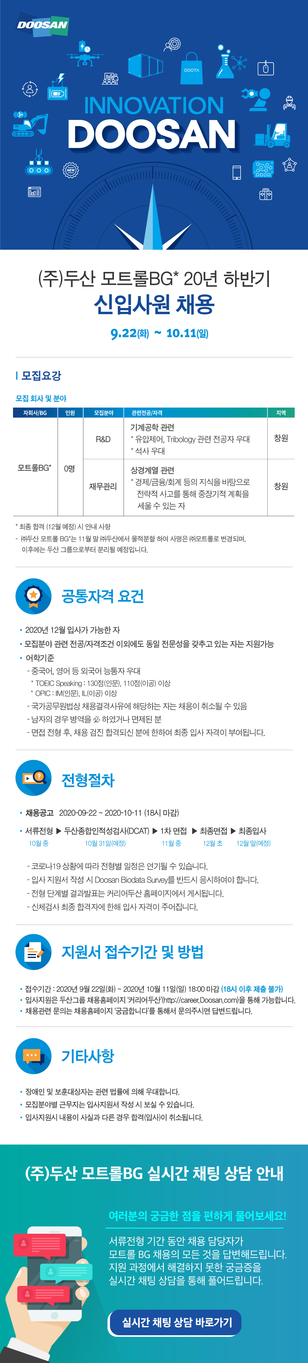 - 전형 단계별 결과발표는 커리어두산 홈페이지에서 게시됩니다.