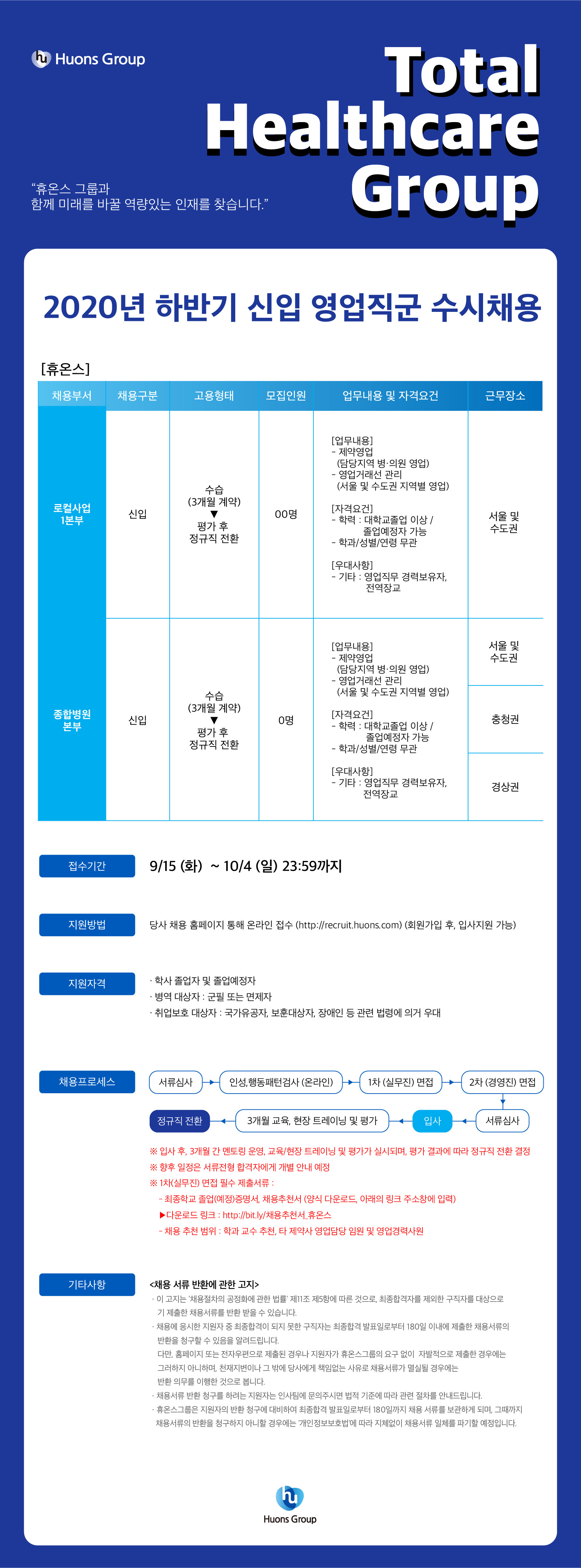 [휴온스글로벌] 2020년 하반기 신입 영업직군 수시채용