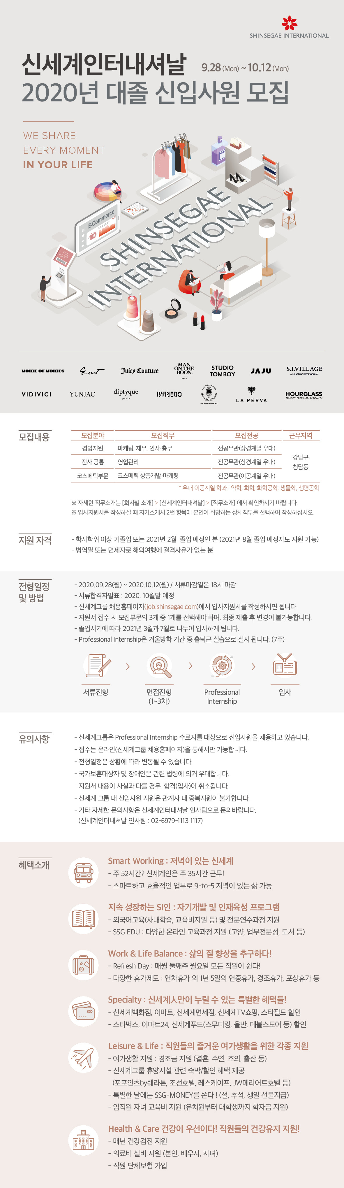 - 지원방법 : 신세계 채용사이트(job.shinsegae.com) 접수